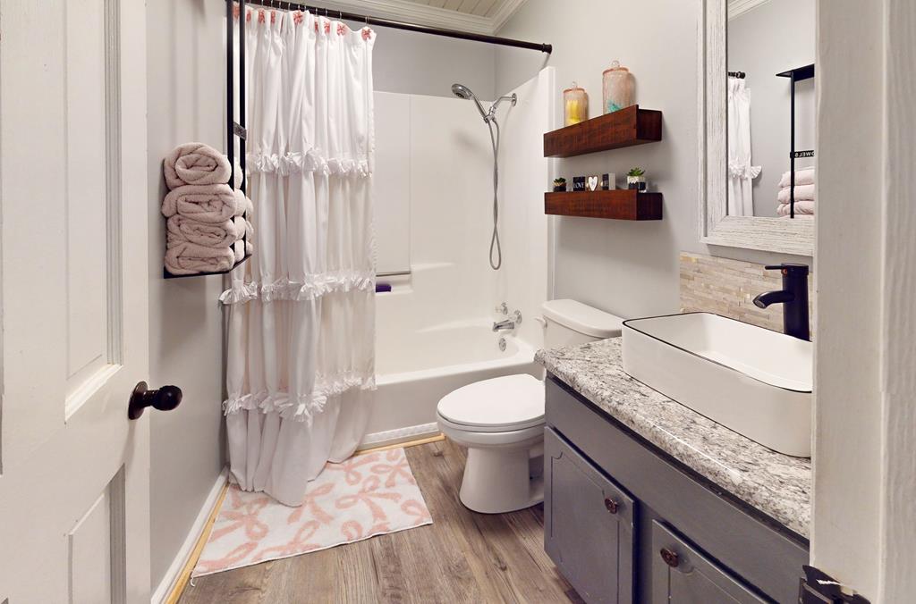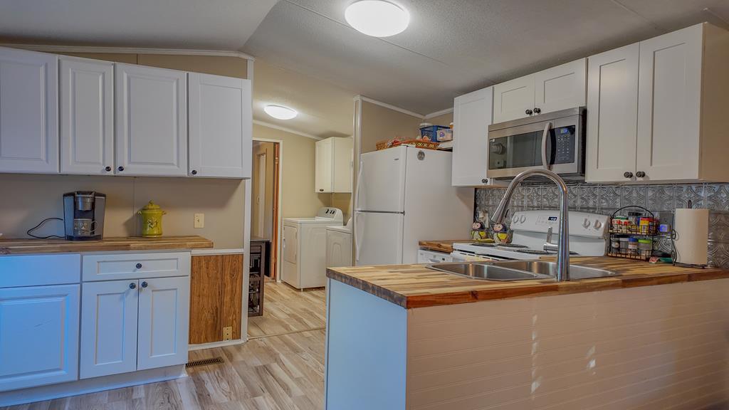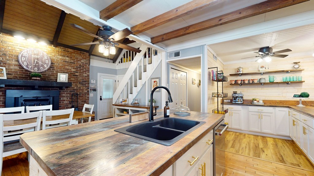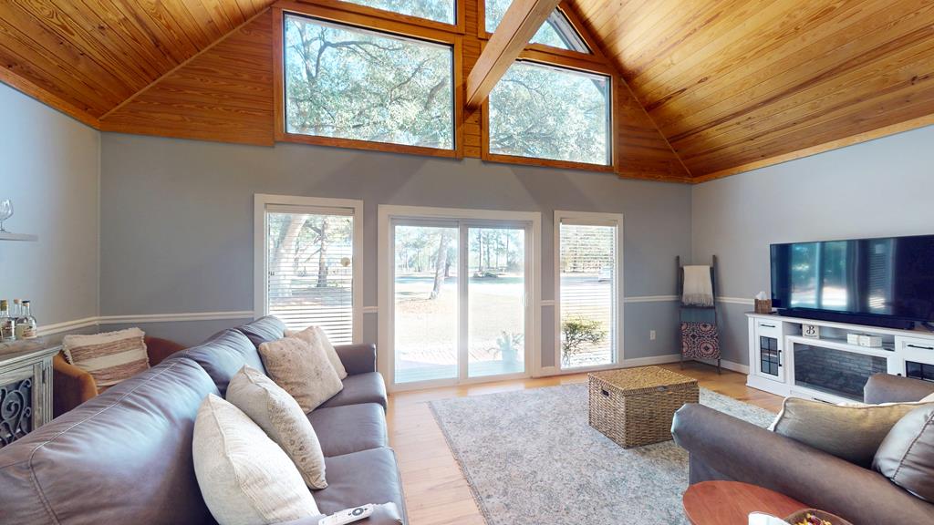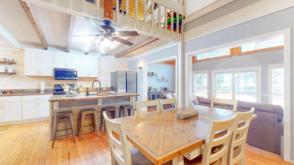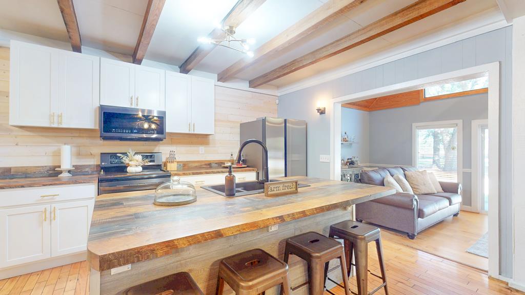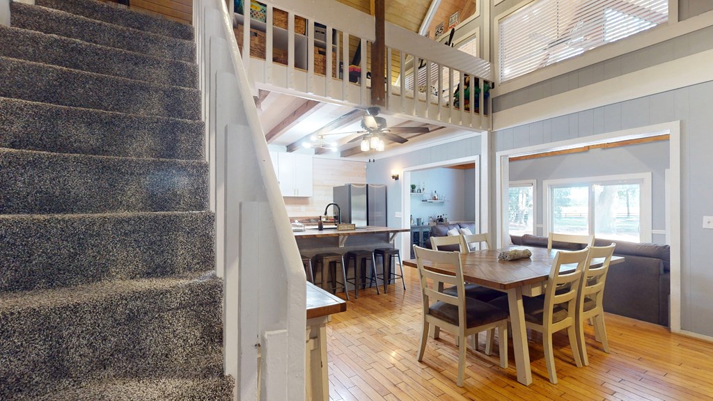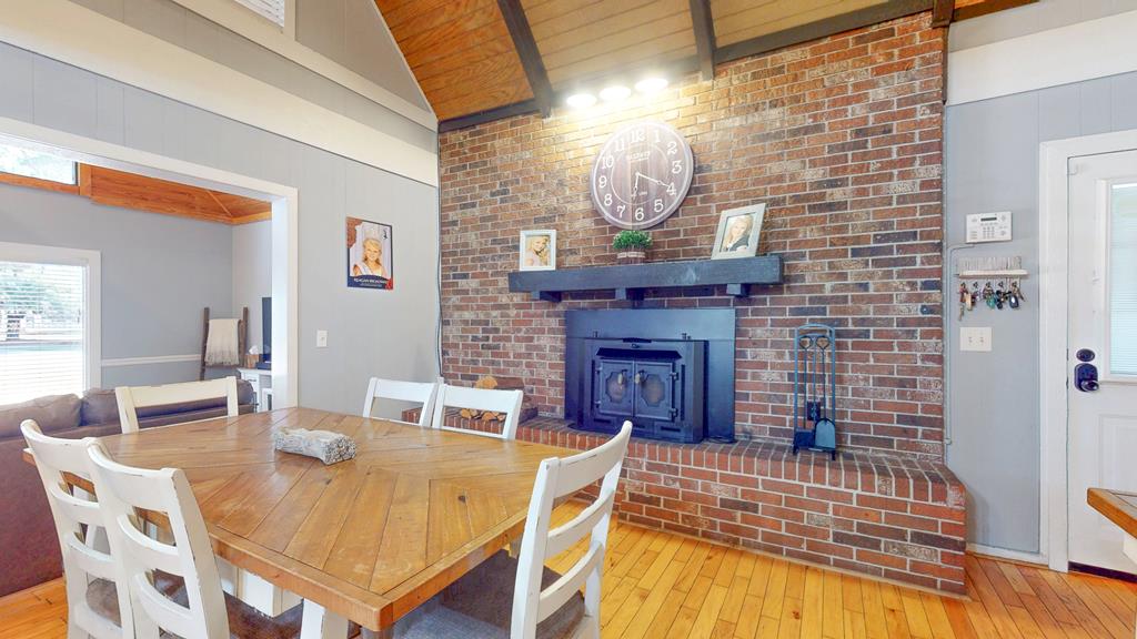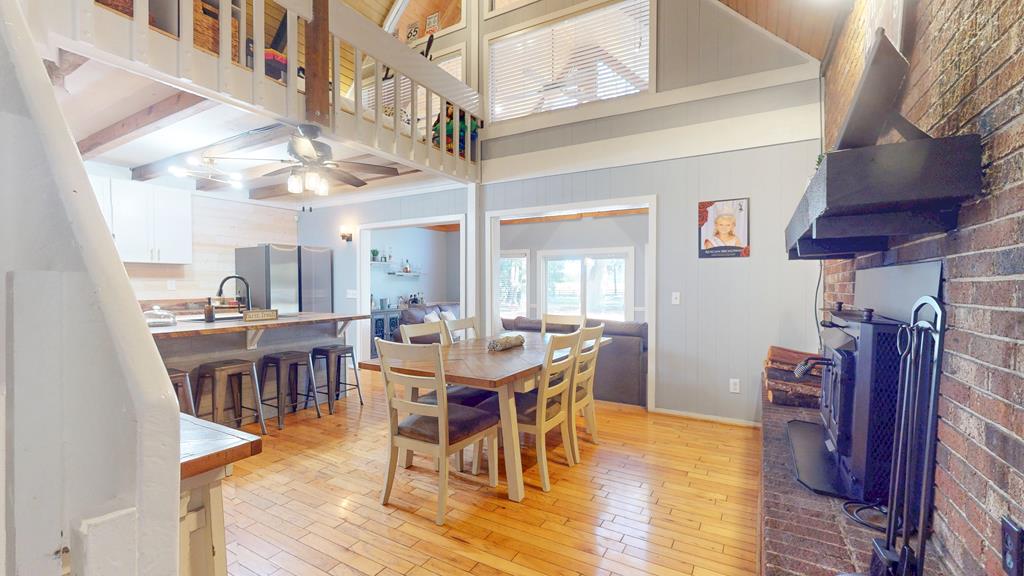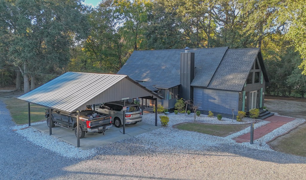 Privately gated and set across eight pristine acres, this exceptional country property offers a refined blend of luxury, privacy, and natural beauty. The four-bedroom, two-bath main residence is thoughtfully designed with rich wood finishes, tongue-and-groove ceilings, and a wood-burning fireplace that brings warmth and character to the living space. A spacious kitchen anchors the home and opens seamlessly to the main living areas, ideal for both everyday comfort and upscale entertaining. The expansive grounds feature open land, mini barns, and a poured concrete slab ready for a workshop or additional structure. The wooded rear acreage provides a tranquil backdrop and outstanding hunting potential, with abundant wildlife and peaceful seclusion. Enhancing the property's appeal is a second residence, offering exceptional flexibility for guest accommodations, multigenerational living, or rental opportunities. With two homes, generous acreage, and a private rural setting, this property presents a rare opportunity to enjoy elevated country living with endless possibilities.