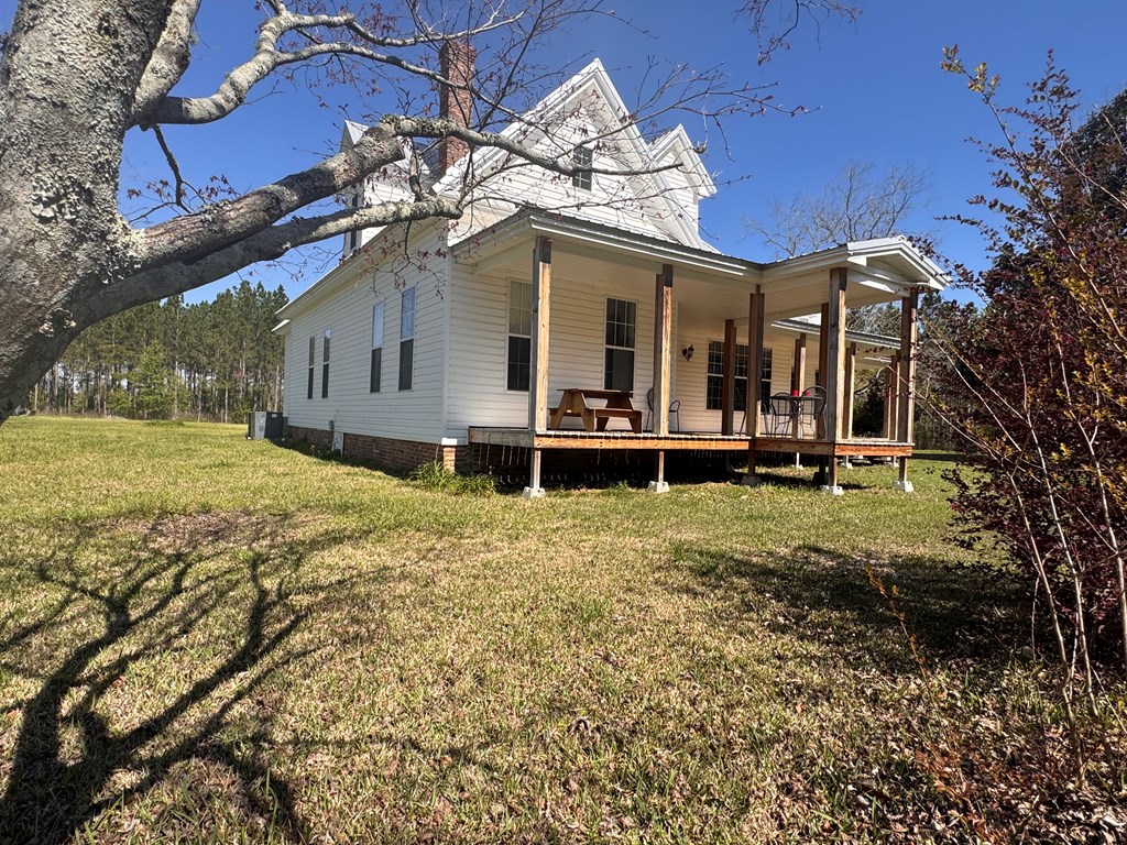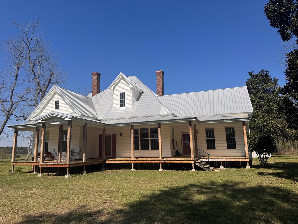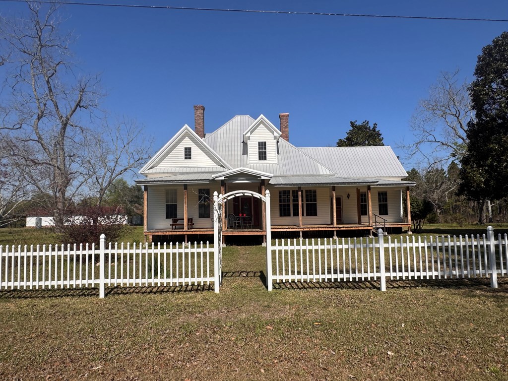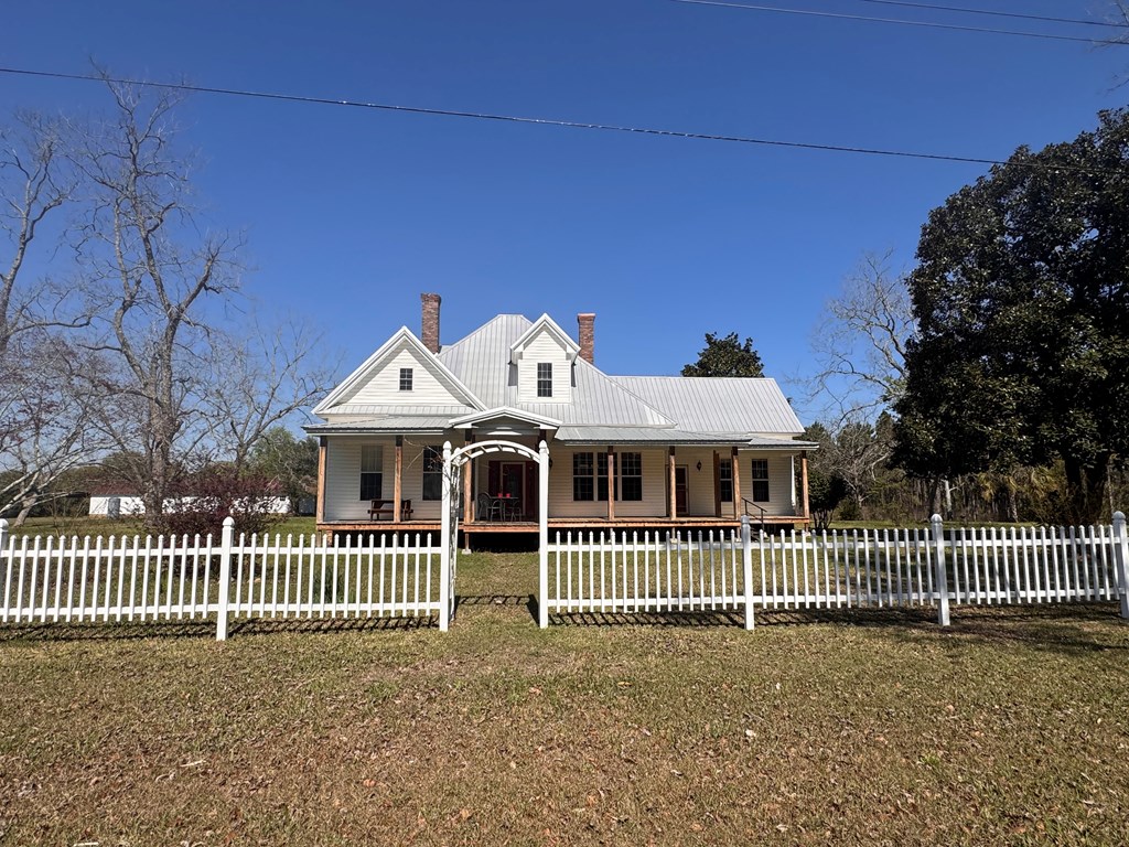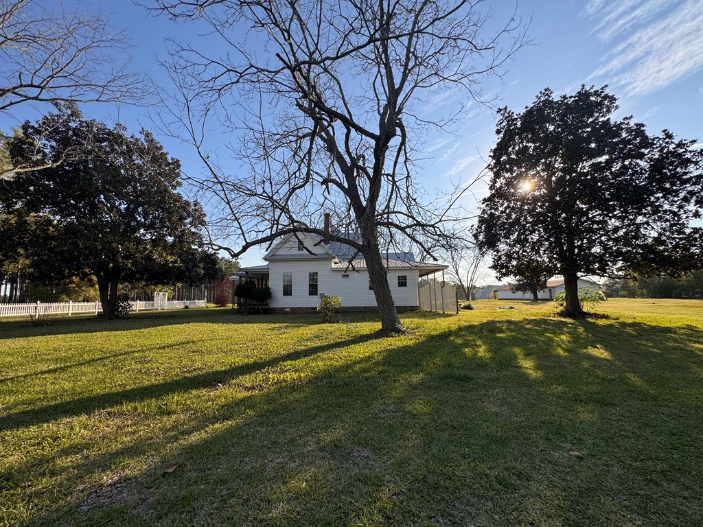Welcome to your private slice of South Georgia living! Situated on approximately 3 acres, this 4-bedroom, 2,230 sq ft home offers space, charm, and peaceful views. Inside, you'll find an inviting layout filled with high ceilings, natural light, warm wood walls and original hardwood floors. A unique fireplace anchors the open dining and living area—perfect for gathering and entertaining. The primary suite is conveniently located on the main level for added comfort and accessibility. Sharing a bathroom and common space, the two bedrooms upstairs are ready for you to finish them off with your personal touch. Step outside to enjoy pecan trees, a serene pond view and wide-open space, ideal for relaxing or creating your dream outdoor retreat. A large outbuilding with electricity provides endless possibilities for storage, hobbies, or a workshop. It's large enough for all three! Enjoy peaceful wooded views and breakfast on the large front porch. If you're looking for space, character, and country tranquility just minutes from town, this property is a must-see!