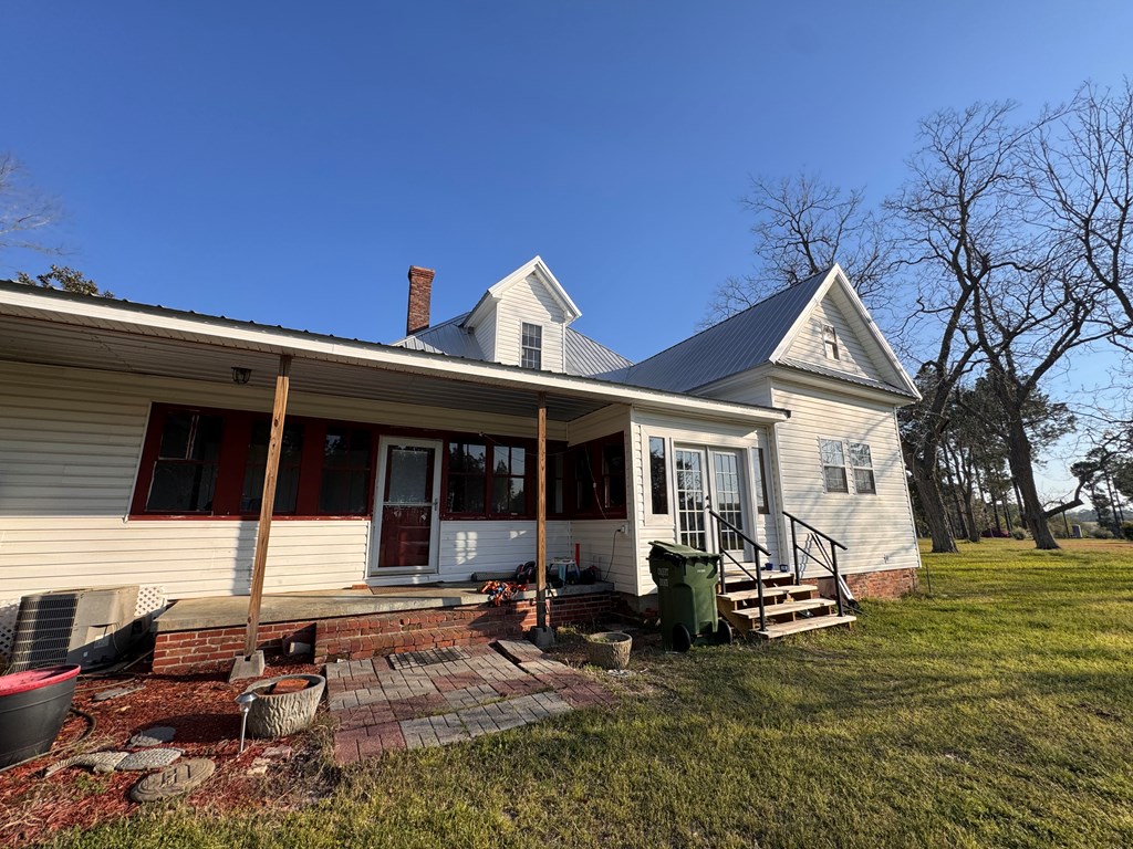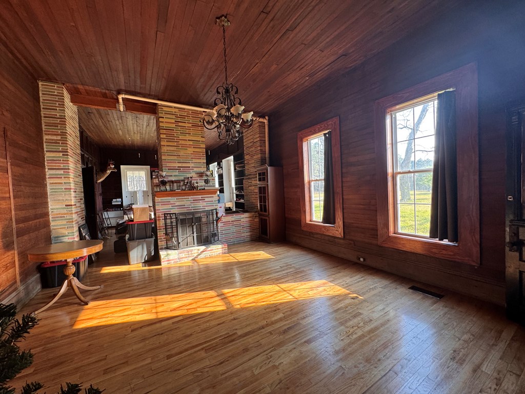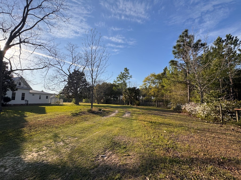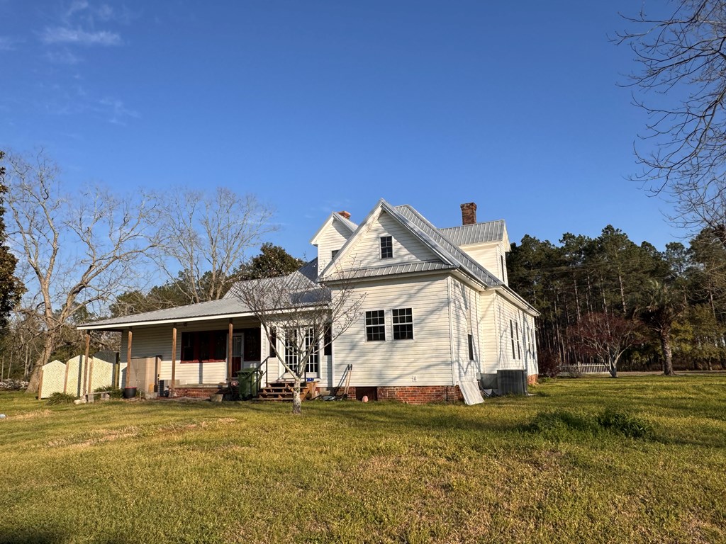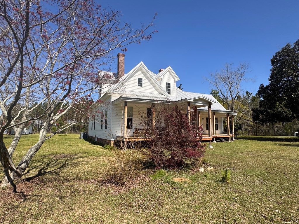 Welcome to your private slice of South Georgia living! Situated on approximately 3 acres, this 4-bedroom, 2,230 sq ft home offers space, charm, and peaceful views. Inside, you'll find an inviting layout filled with high ceilings, natural light, warm wood walls and original hardwood floors. A unique fireplace anchors the open dining and living area—perfect for gathering and entertaining. The primary suite is conveniently located on the main level for added comfort and accessibility. Sharing a bathroom and common space, the two bedrooms upstairs are ready for you to finish them off with your personal touch. Step outside to enjoy pecan trees, a serene pond view and wide-open space, ideal for relaxing or creating your dream outdoor retreat. A large outbuilding with electricity provides endless possibilities for storage, hobbies, or a workshop. It's large enough for all three! Enjoy peaceful wooded views and breakfast on the large front porch. If you're looking for space, character, and country tranquility just minutes from town, this property is a must-see!