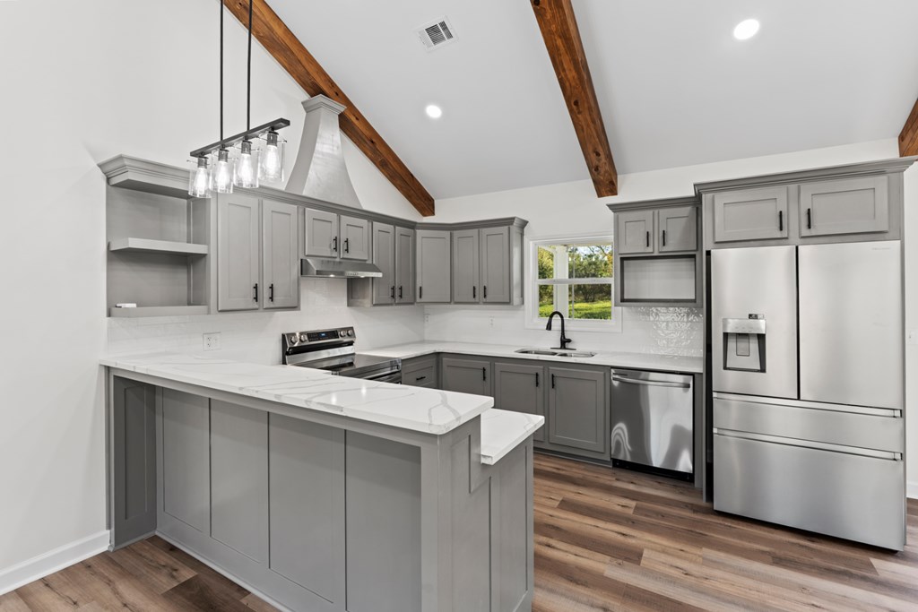 New construction in Indian Lake Subdivision. This custom-built 3-bedroom, 2-bath home features an open floor plan with LVP flooring and a vaulted ceiling accented by wooden beams. The beautiful kitchen has custom cabinetry, granite countertops, and bar seating. The master suite offers a private bath with double sinks, a tiled shower, a soaking tub, and a custom walk-in closet. Enjoy outdoor living on the spacious front porch with a wood-paneled ceiling. Situated on a large lot with a two-car garage, this new home blends quality and craftsmanship with modern comfort. Owners will also have access to Indian Lake for recreation and relaxation. This house is stunning and truly a must-see!!