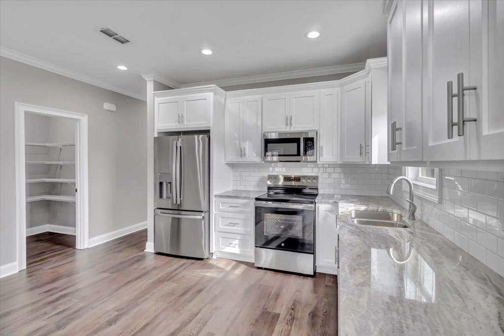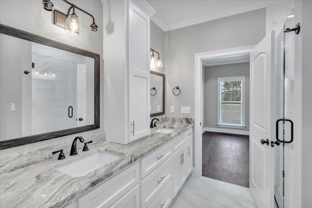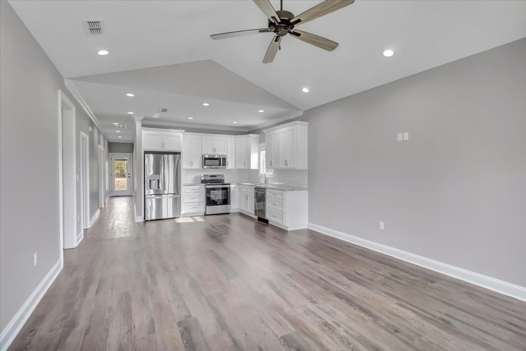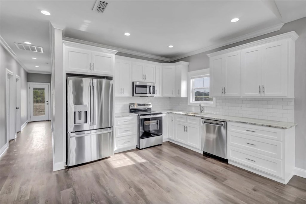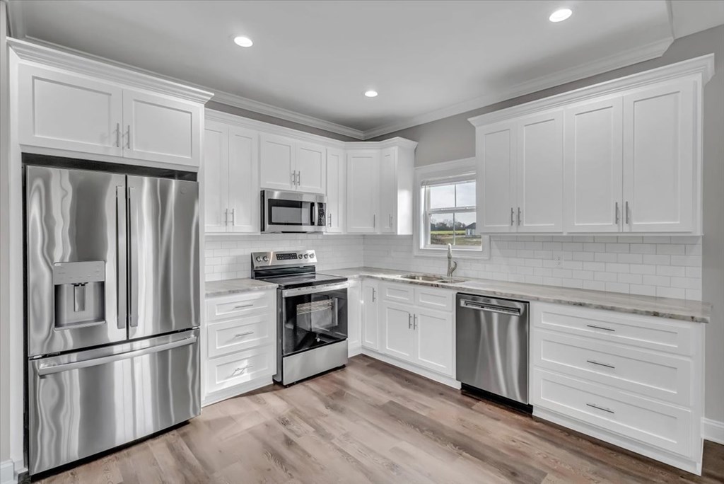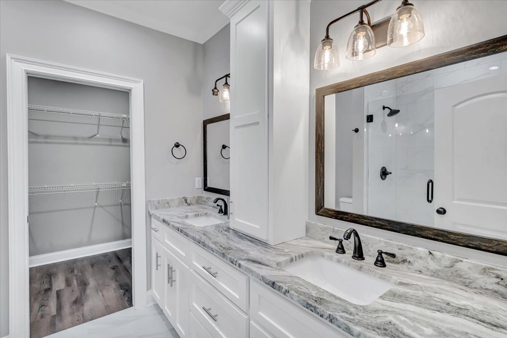Brand new construction in a desirable neighborhood! This home features an open concept layout with living, dining, and kitchen. The kitchen is beautiful with white custom cabinetry, hard surface countertops, and tiled backsplash. The master suite offers a lavish shower, double vanites and walk in closet. This home is turnkey ready for its first official homeowners!